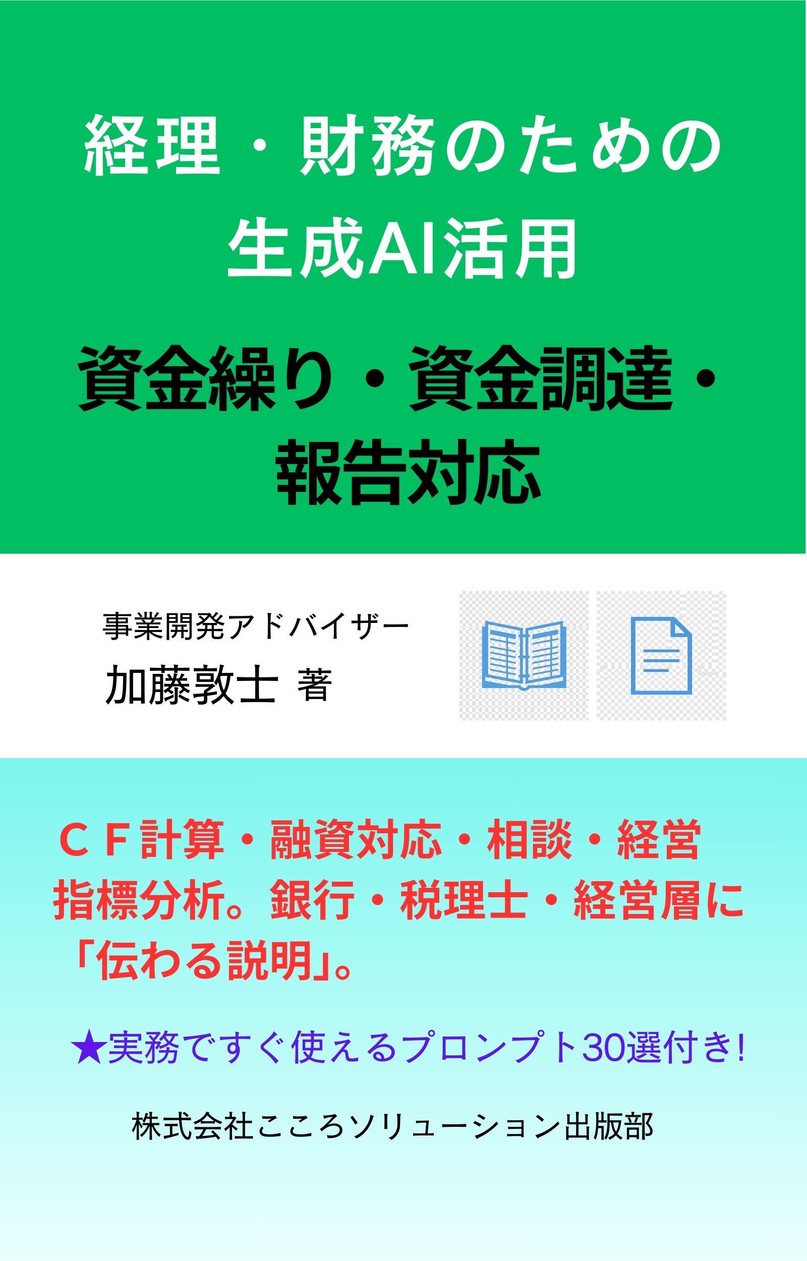弊社取締役の加藤敦士が「経理・財務のための生成AI活用~資金繰り・資金調達・報告対応」を著しました。資金繰り予測、融資申込や返済相談の説明、税理士など専門家への報告、そして経営層への報告資料の作成まで、AI活用法を詳しく解説しています。