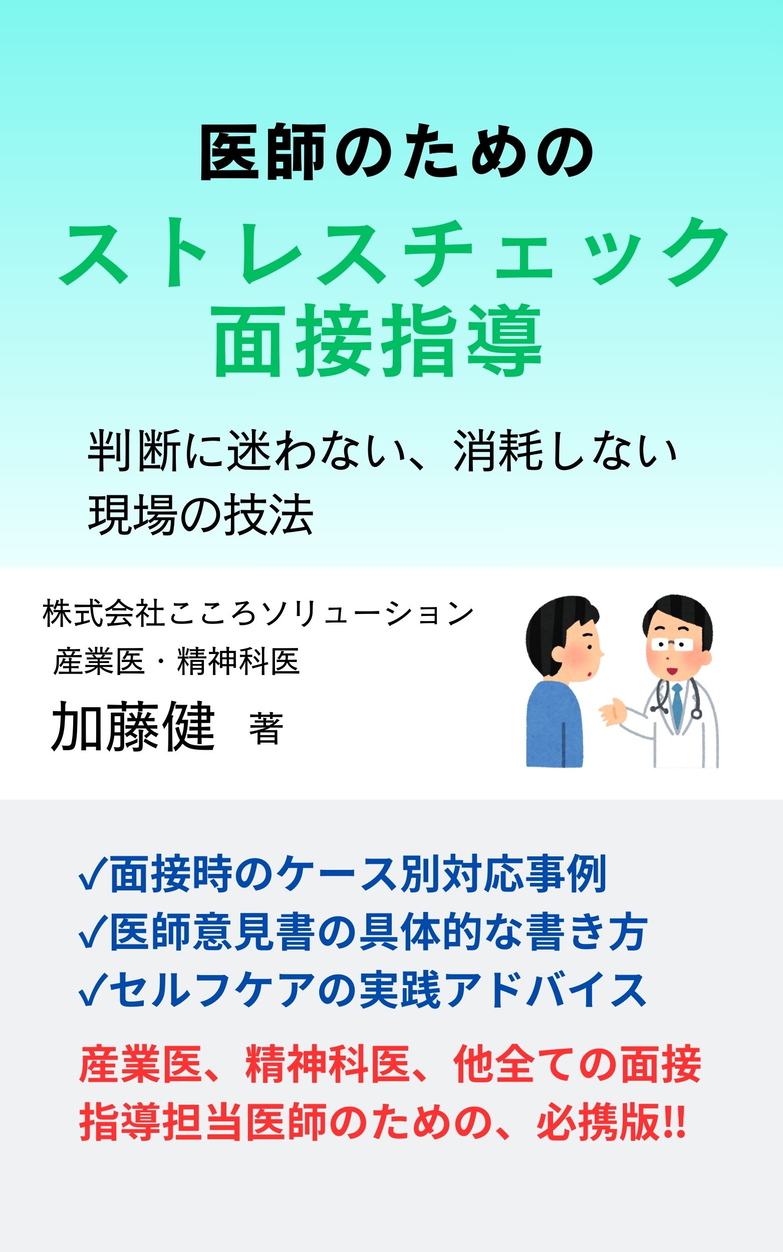 弊社代表の加藤健が「医師のためのストレスチェック面接指導 ―判断に迷わない、消耗しない現場の技法」を著しました。ストレスチェック医師面接指導に特化した、医師のための実務書、必読の内容です。